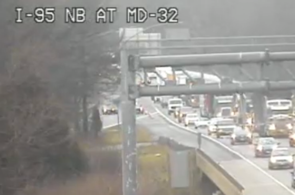 The ramp from I-95 north to MD 32 east remained closed for cleanup for at least an hour, according to CHART. Vehicles were still able to get by on I-95 north; but access to the Route 32 east ramp was closed and traffic was congested on I-95 between MD 216 and MD 32, WNEW reported.