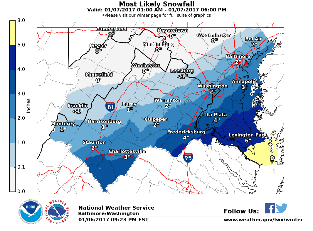 The National Weather Service has issued a winter weather advisory for central and southeast Howard County from 3 a.m. to 3 p.m. Saturday.
