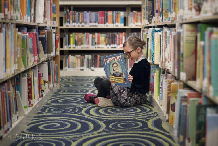 "As soon as I saw the photo, I wanted to pay it forward to Krista and all the other great moms who empower their girls to read!" Howard County photographer Jody McKinley posted on her website. "I offered to take a few photos of her so she could keep the memory forever. We scheduled an outdoor shoot, and on the day we were supposed to meet, there was a freak mini snow storm! Thinking quickly, I took us to the library instead. I think it turned out to be the perfect setting."