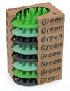 Believe it or not, the Green (see photos courtesy of Northmate) is actually green (teal, green or dark green) and resembles hard, fat ‘blades’ of grass. Dog tongues reach down between the blades to scarf up pieces of kibble. It takes about 15 times longer to eat from a Green than from a dog food bowl! I even timed it!