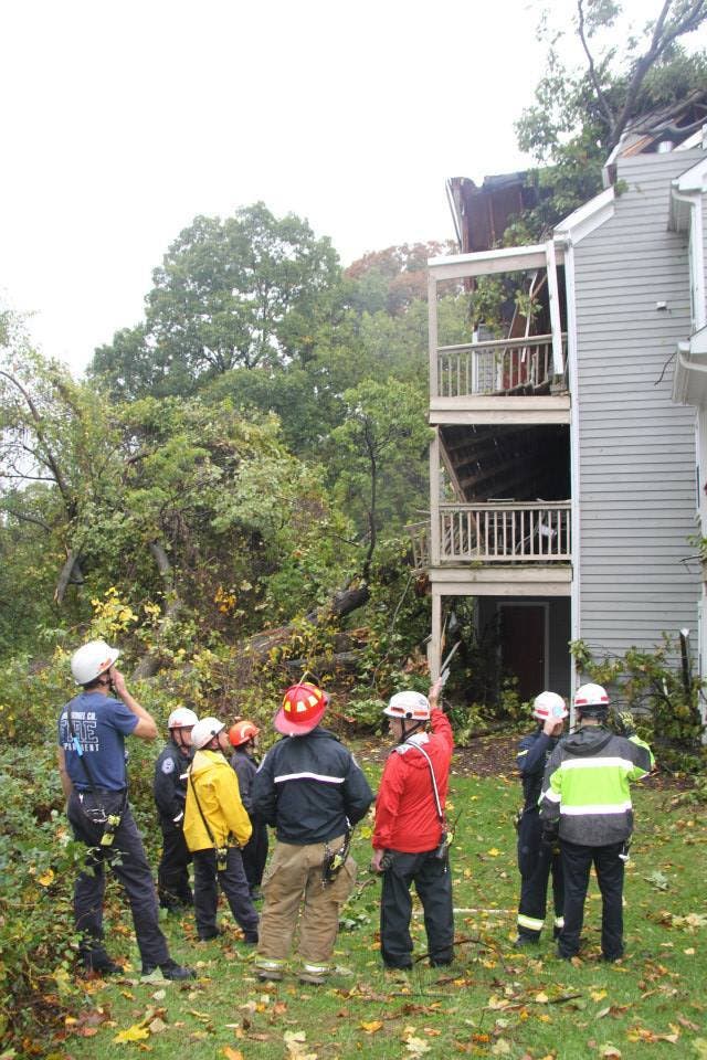 The National Weather Service said the storm was responsible for tree into building.