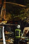 Initially, crews responded to a report of a house fire with explosion and found a middle-of-the-group townhouse and three additional homes ablaze, according to fire officials.