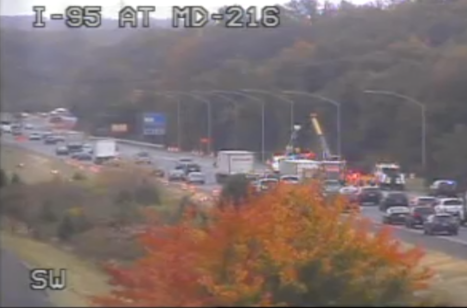 The two-vehicle crash was reported at approximately 5:15 a.m. on Wednesday on I-95 south at the exit for MD Route 216/Scaggsville Road, according to the Maryland Department of Transportation.