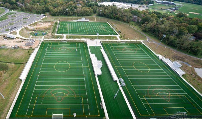 In addition to three lighted synthetic turf multipurpose fields (now named Del. Frank S. Turner Fields), the first phase of Blandair Park includes press boxes, bleachers, a playground and parking lot, according to Howard County government.