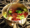 In a saucepan, combine all ingredients except basil and boil over medium heat for approximately five minutes. Remove basil leaves from stems and add to the boiling mixture. Turn off the heat and stir, allowing leaves to steep, uncovered, for five minutes. Strain mixture into a bowl.