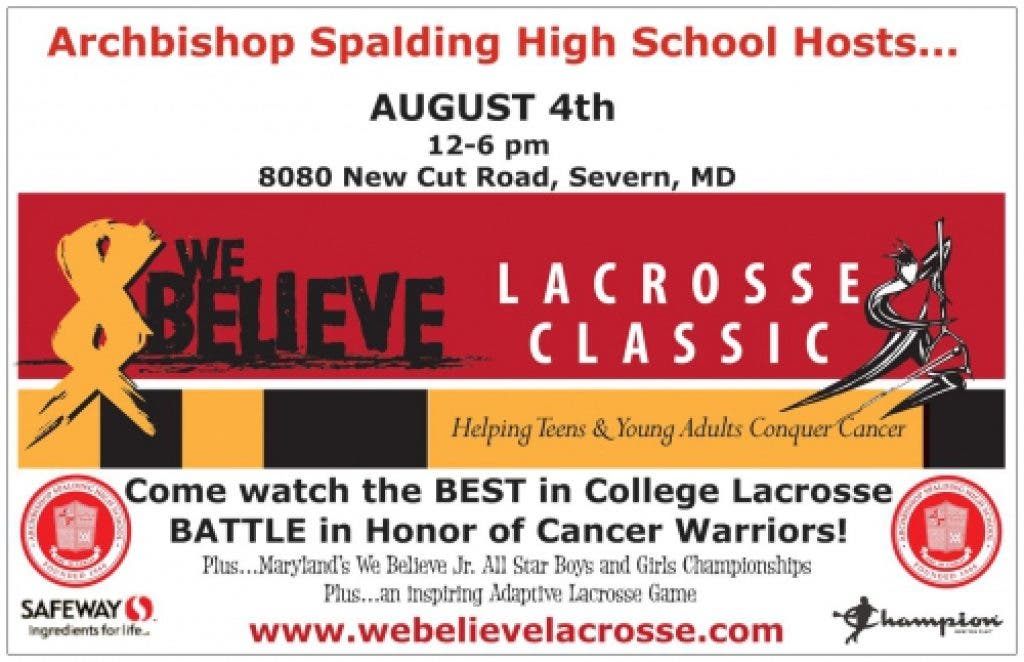 The 5th Annual We Believe Lacrosse Classic will be held at Archbishop Spalding High School in Severn, Maryland, August 4, 2012.