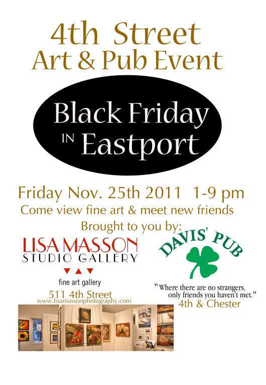 and Davis' Pub 4th and Chester invite you to come view fine art and meet some new friends from 1-9pm Friday Nov. 25th.