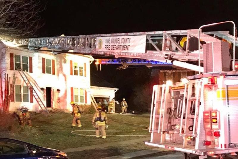 The Gambrills fire in the 1000 block of Ice Castle Court was reported around 11:40 p.m. in the home's attached garage. Fire crews said flames were visible from the front, side and through the roof of the two-story single family home. Thirty-five firefighters brought the fire under control in under 20 minutes.