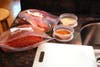 Because the flank steak is a tougher cut of meat, it should be cut thinly on a bias (or at an angle) against the grain to be served in strips. You can serve the strips as you sliced them or you can roll them up in round shapes as I did. For a real treat, grab a pinch of mixed greens or our good friend arugula, and wrap the Flank slices around a bundle of fresh greens for a summer steak salad. Enjoy!