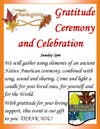 After the Reiki share, please stay for our annual Gratitude Ceremony to honor those for whom we owe thanks.