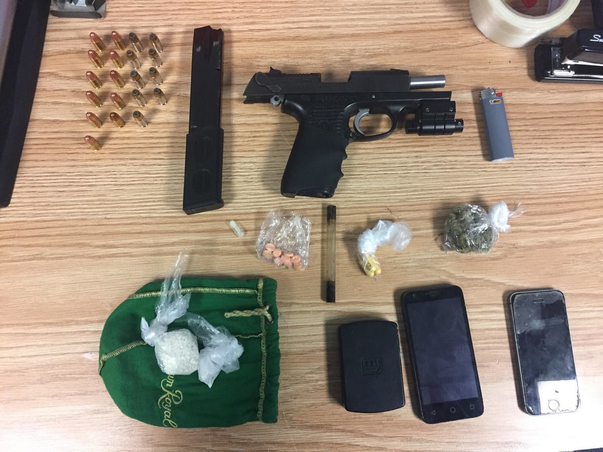 Finding Mitchell in the vehicle, they searched him and found a loaded 9mm Ruger pistol and a 30-round magazine, along with 15 grams of heroin, four grams of crack cocaine, eight grams of marijuana, 14 pills and $740 in cash, the police said.