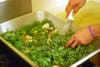 Melt butter into extra large sauté pan. I used a large pan over two burners on my cooktop. Once the butter is melted, sauté the onions, kale and apples. Add apple juice during this process to soften the kale. Sauté until kale wilts and apple juice is reduced, approximately three to five minutes. You’ll notice the kale growing more brilliantly green. Remove from heat.
