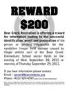 The Bear Creek Recreation Council is offering a reward for information leading to the arrest and conviction of the perpetrator or perpetrators.