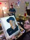Dundalk head football coach Mike Downes also sat for two hours, posing for real-time portraits by Dundalk High students.