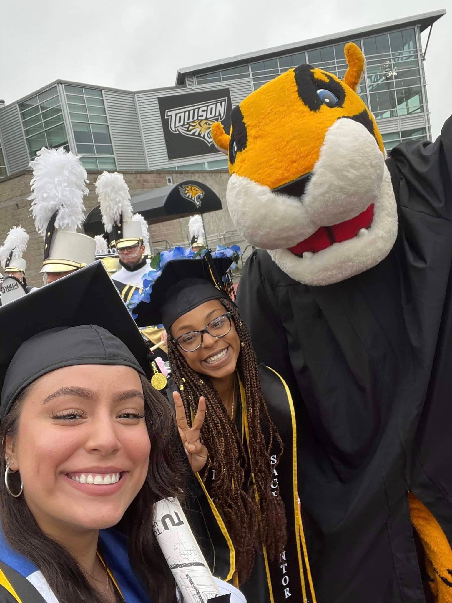 Ebonie Valentin rounded out this week's gallery with another graduation flick. This photo shows her daughter, Aja, and her friend, Emily, graduating from Towson University. Doc the Tiger also hopped in their shot.