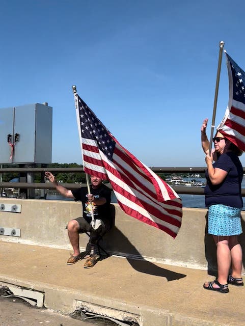 The Naval Academy graduation rolled right into Memorial Day. Toni Thornton snapped this photo of residents waving American flags on the South River Bridge on the holiday.