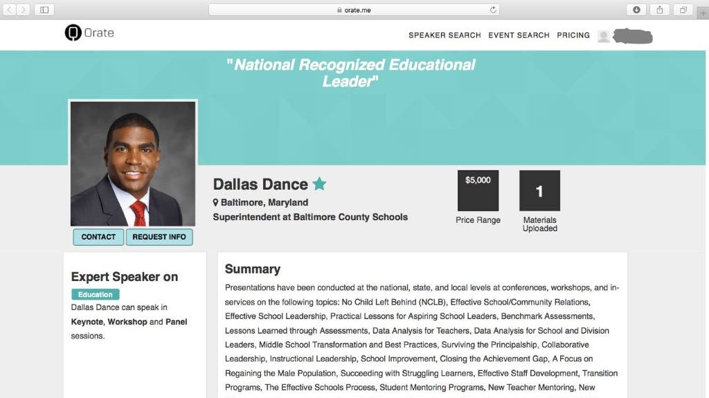 Mychael Dickerson, a spokesman for Dance, said his portfolio on the website Orate.me is a fake that Dance had nothing to do with creating.