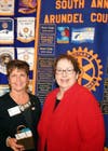 (Image 2) Rotary District Governor Anna-Mae Kobbe, right, announced at the Rotary Club of South Anne Arundel County meeting Dec. 15 that Robin Hatfield as the club's outstanding woman member. In her remarks, Kobbe recalled the Supreme Court decision on May 4, 1977, requiring service clubs to admit women, and the major impact it had on Rotary.