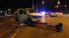 Witnesses said that a silver four-door sedan was traveling west on 214 (Central Avenue) at a high rate of speed when it ran a red light and crashed into a white van that was proceeding (on green) through the intersection. The force of the crash broke ladder racks off the van and sent several extension ladders into the roadway.