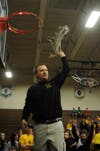 Most of the crowd stayed to watch the South Carroll players cut down the net.