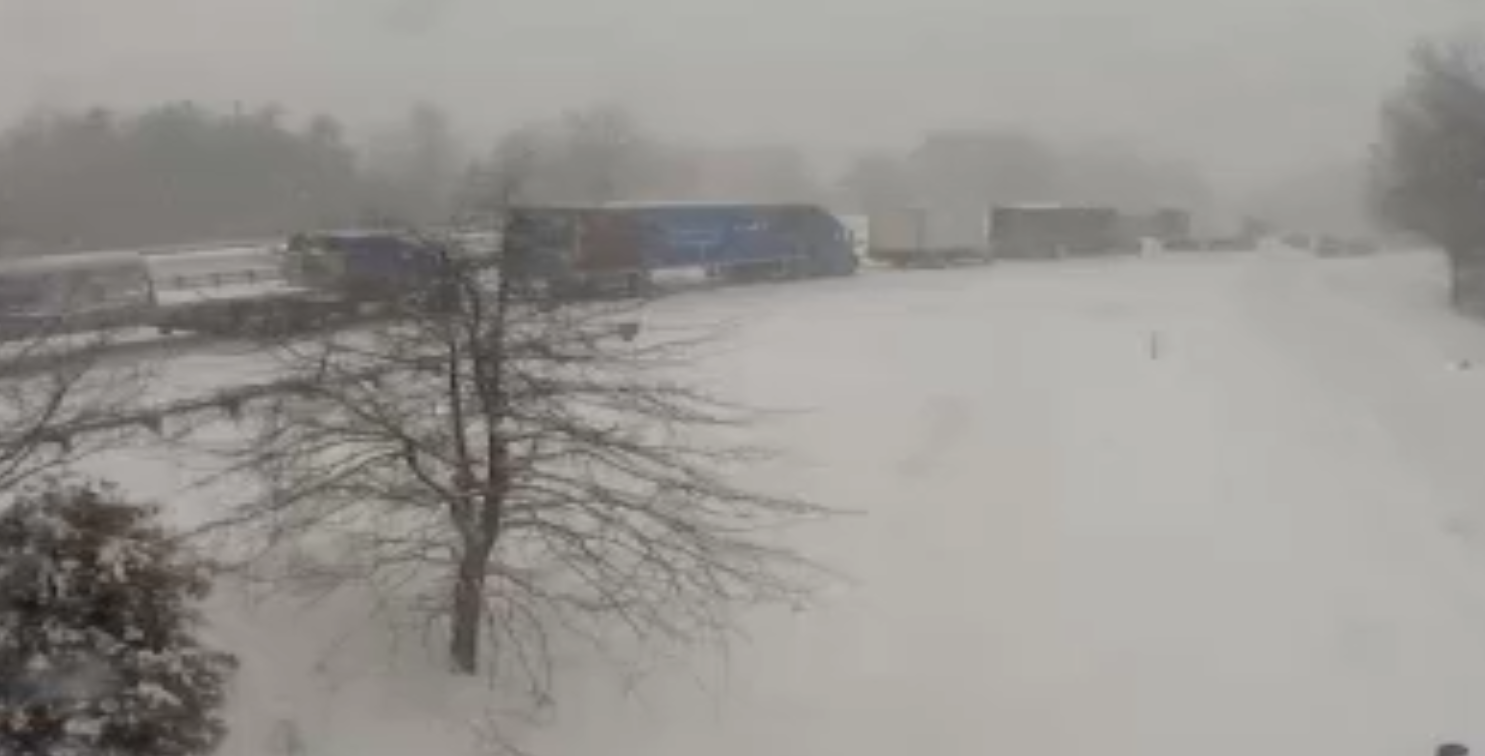 Two tractor-trailers got stuck on a hill, WBAL reported.