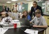 Obama circled the room, watching videos the kids had made on laptops explaining their bay project.