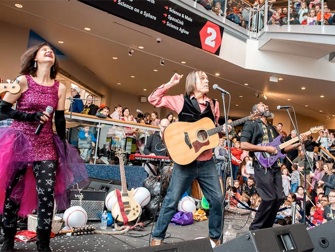 In the Center Court on the Celebration Stage, the library will provide storytelling and music from 10:30 a.m.-noon, followed by a DIY demonstration from noon-12:45 p.m. From 1-2 p.m., Toby’s Dinner Theatre will provide a Dance/Movement Workshhop, followed by a mallTALK from 2-2:15 p.m. by Rene M. Buckman of the Columbia Association’s Youth & Teen Services. More library storytelling will follow from 2:15-2:30 p.m.There will be a special performance at 3 p.m. by Milkshake, a Grammy-nominated original rock band for children and families.