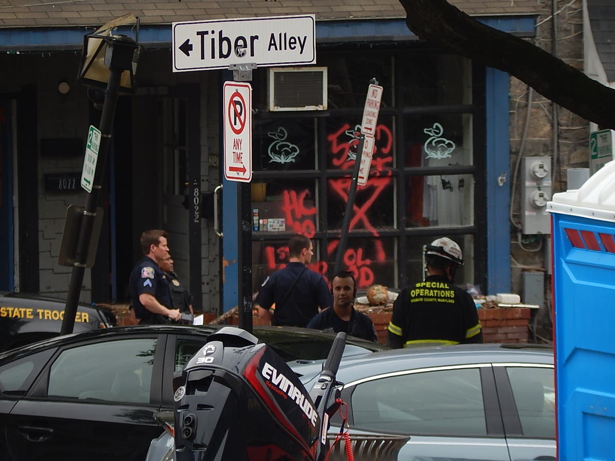 The tour was canceled but media were allowed to walk from St. Paul to Maryland Avenue as far as Tiber Alley, near the southern edge of the B&O Ellicott City Station Museum.