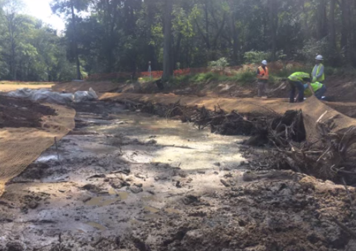 Crews have been grading the stream bed and installing plantings and logs to help reduce runoff as part of a $1.7 million project drawing upon state and federal funds, bringing the site into accordance with the Clean Water Act, the State Highway Administration reports.
