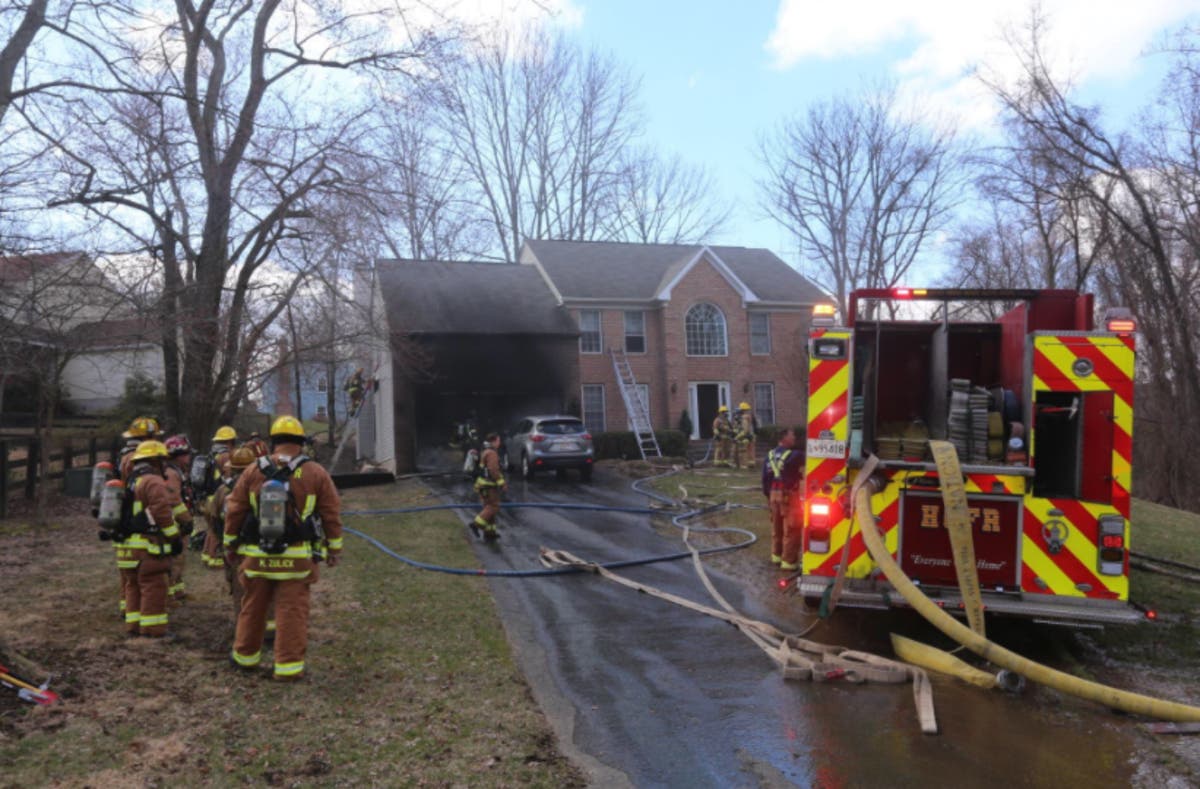 Before 3:30 p.m., emergency personnel were dispatched to a garage fire in the 10000 block of Emily Fox Court, according to Howard County fire and rescue officials.