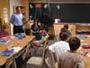 Ulman visited various 6th, 7th and 8th grade classrooms, the media center, the gymnasium and the band room, among others.