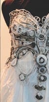 In her world, impossibilities are defeated with thoughtful precision. When working on a paper dress she doesn’t use a pattern. Instead, she creates a pattern out of shapes. Then she spends hours rolling the paper into intricate designs.