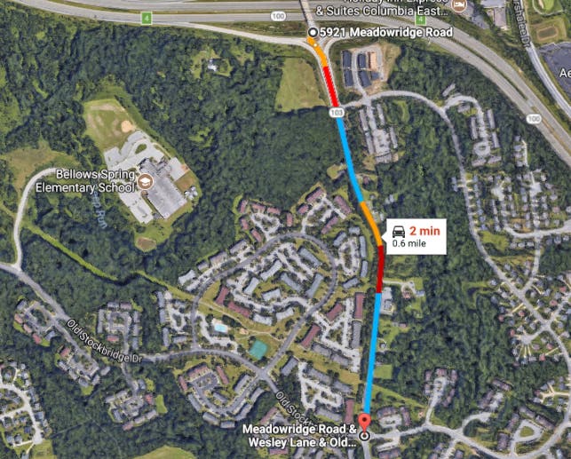 Meadowridge Road was closed between Old Stockbridge Road and Route 100 until approximately noon, according to the Howard County Police Department.