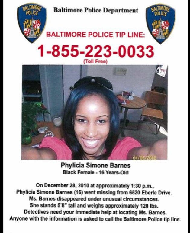 Barnes was from Monroe, N.C., and was visiting her half-sister when she went missing from northwest Baltimore three days after Christmas. Police have had few clues to work with.