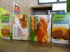 The vegetarian sandwiches are a breaded imitation chicken strip; a veggie burger; and a vegetarian sausage patty for breakfast.