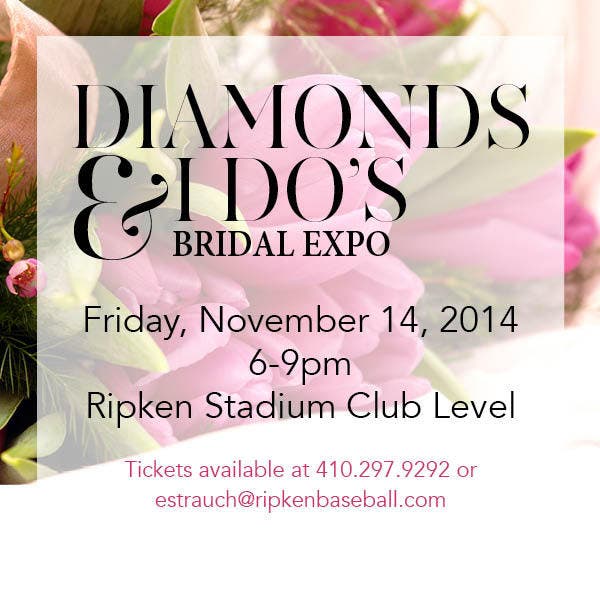 Ripken Stadium will be hosting the inaugural Diamonds & I Do’s Bridal Expo on Friday, November 14th, 2014 from 6pm - 9pm on the Club Level. Meet with a number of local wedding vendors, sample our catering, and enjoy a relaxing evening with friends! To register call Liz at Ripken Stadium, 410-297-9292 x320.