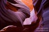 "Antelope's Rainbow," which features a view inside of the Arizona slot canyon shimmers with the natural light reflections cascading across the layers of stone carved into smooth formations by rushing water.