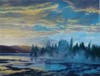 Although this was highly unusual and not in keeping with the tradition of the Schuler School, Thompson continues to use a palette knife in lieu of the customary brush for many of her landscapes.