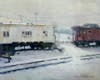 When she moved to Gaithersburg about ten years ago, she went out to the train station in Olde Towne and painted the train. Last winter, she revisited the locomotive on a snowy day and painted the steam engine sitting out on the tracks covered with snow.