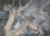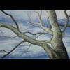 Joanne Bleichner, currently showing her work at the Arts Barn in Gaithersburg, climbs up hauntingly beautiful and gnarly tree branches through her large-scale paintings. Stark compositions composed of millions of tiny brushstrokes in muted tones ranging from sky light blue to deep siennas blend into the background skies against which she sets her sometimes peaceful and sometimes foreboding true-to-life branches.