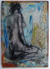 "The one artwork I would highlight from mousetrapped is 'Mouse Haven,' which includes my drawing illustrating when I scared the mouse. He ran - it was a blur - from behind the stove- when I was grinding coffee beans with my electric grinder. That's why I included the coffee grounds and coffee filter in the artwork.