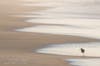 "Lone Willett" shows the sunlit profile of the bird set against a sinuous pattern of golden waves washing up on a sandy beach.