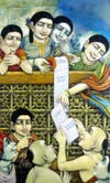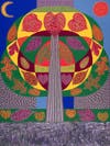 Russian Folk Art, as exemplified in "The Tree of Life" and "Fluffy," which she painted for her daughter, is her latest inspiration.
