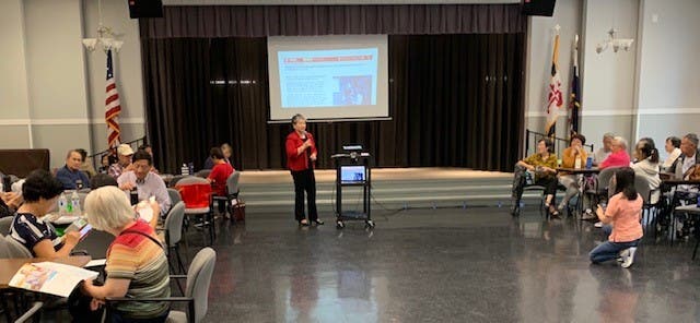 How are you caring for your family? Attracting over 140 participants, The Chinese Culture and Community Service Center’s (CCACC) Evergreen Club for senior recreation at the Rockville Senior Center partnered with AARP to introduce people to “Family Caregiving”. AARP is one of the largest non-profit organizations in the US, and Ms. Lily Liu, an AARP representative, was able to dedicate her time to working with CCACC’s Evergreen Club.