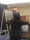 Bryan and Day thanked participating artists, introducing those who were present, including Callie Lebo, Judy Gross, Clark Day John Duke, Sharyn Bowman and Rawligh Sybrant. They also expressed their gratitude toward Arun and Aruna Singh, the generous owners of Frame Tech, an art gallery and frame shop located in Laytonsville, Maryland. The Singh's custom- framed some of the unframed pieces donated for auction at a discount.