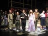 The unfurling of an enormous Nazi flag in the Capulet household; the clamour of life-like skirmishes on stage, as actors throw punches and wield guns and knives; Juliet and Romeo's unsanctioned marriage, as she wears a cross and he a yarmulke, and they are married by a priest who cackles like a schoolboy at the utter absurdity and apparent impossibility of Romeo's love for Juliet; Tybald's bloodthirsty stare, as he readies to joust with Romeo and murders Mercutio in the process; the sound of WWII planes overhead, as Romeo and Juliet make their short-lived vows—all these factors come together to give meaning to the conflict.