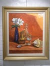 Still lifes are another of Rulei Bu's own staples. His student Cynthia Liu followed in her teacher's footsteps with "Serene Graces," a still life she set up with objects she found around Bu's house.