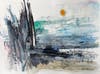 Borchert also showcases a number of her soft abstracted landscape paintings in watercolor such as "Sunset Over Water" and "Country Road" - all art derived from the artist's environment and imagination.
