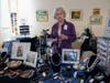 Lynch transfers found patterns onto wooden boxes and carves and paints the designs.