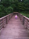 At roughly the half-way point of our journey, I stopped to transfer my now-tired toddler to her stroller, which punctuated the relative quiet with shrieks of “No, no! No stroller!” To distract her, I pointed out the picnic benches that grace the northern portion of the trail. I reminded her that her brothers and father took her there once for a picnic.